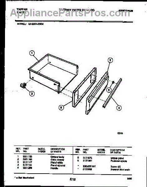 Parts for Frigidaire 30-3851-23-04: 04 - Drawer Parts