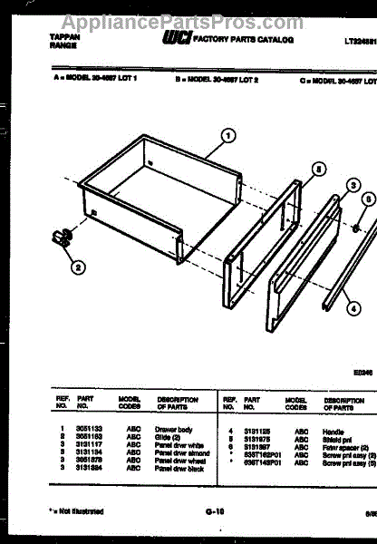 Parts for Frigidaire 30-4687-08-01: 07 - Drawer Parts