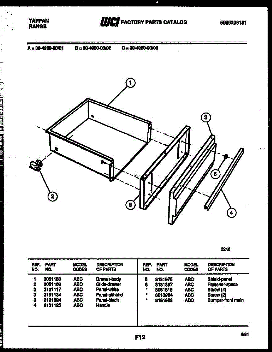 Parts for Frigidaire 30-4980-00-03: 04 - Drawer Parts