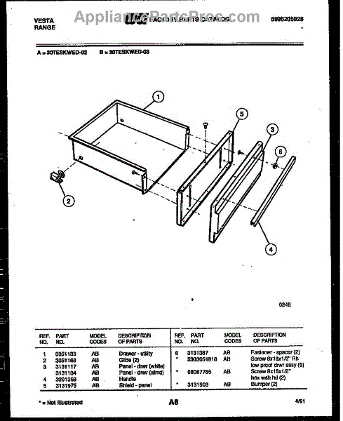 Parts for Frigidaire 30TESKWED2: 05 - Drawer Parts