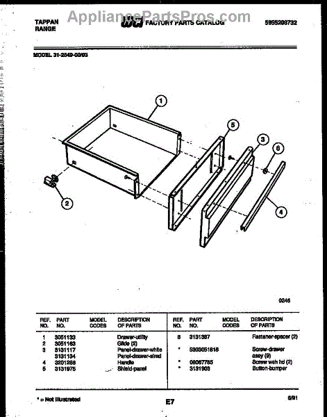Parts for Frigidaire 31-2549-00-03: 05 - Drawer Parts
