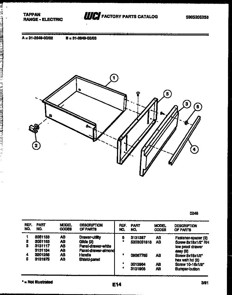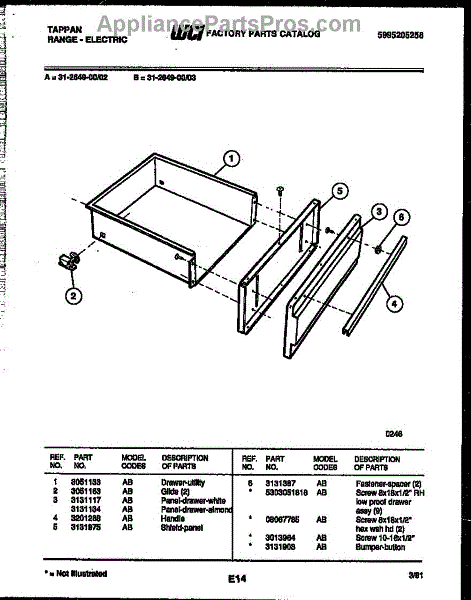 Parts for Frigidaire 31-2649-00-03: 05 - Drawer Parts