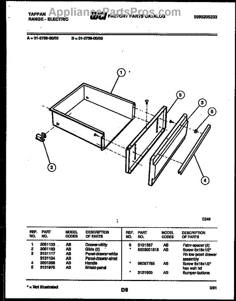 Parts for Frigidaire 31-2759-00-02: 05 - Drawer Parts