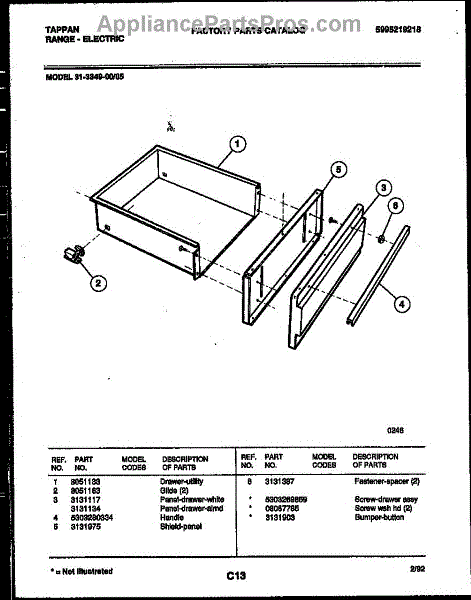 Parts for Frigidaire 31-3349-23-05: 02 - Drawer Parts