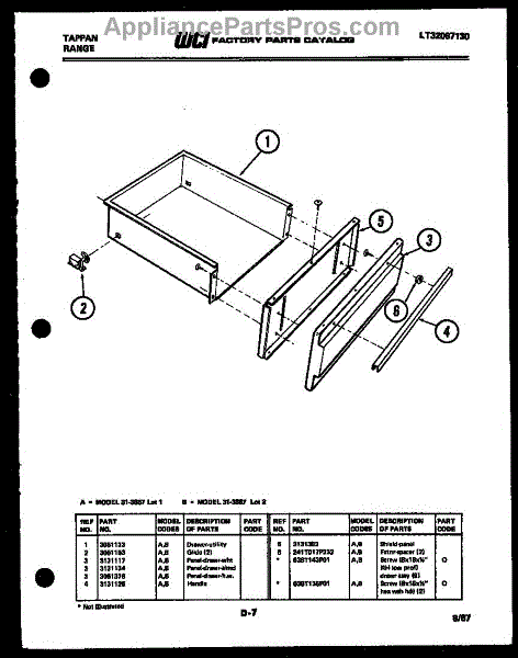 Parts for Frigidaire 31-3857-66-01: 05 - Drawer Parts