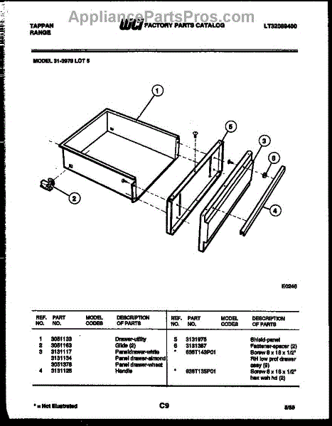 Parts for Frigidaire 31-3978-66-05: 04 - Drawer Parts