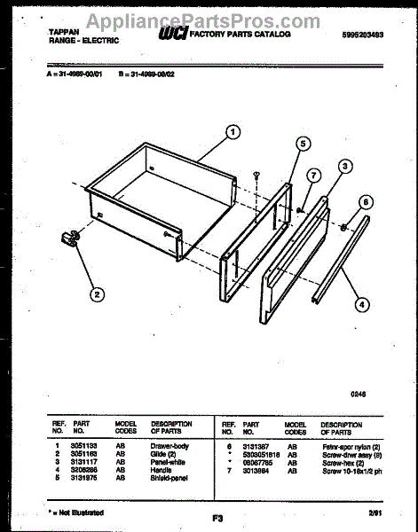 Parts for Frigidaire 31-4989-00-02: 07 - Drawer Parts
