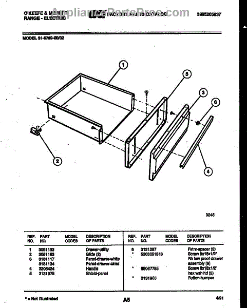 Parts for Frigidaire 31-6759-00-02: 05 - Drawer Parts