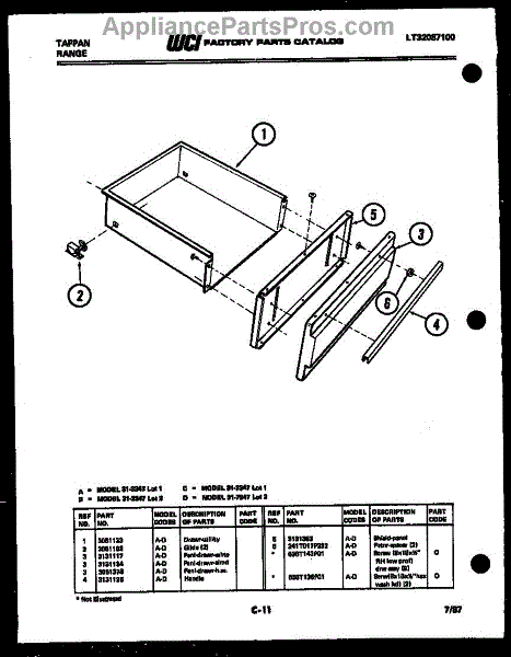 Parts for Frigidaire 31-7347-00-02: 05 - Drawer Parts