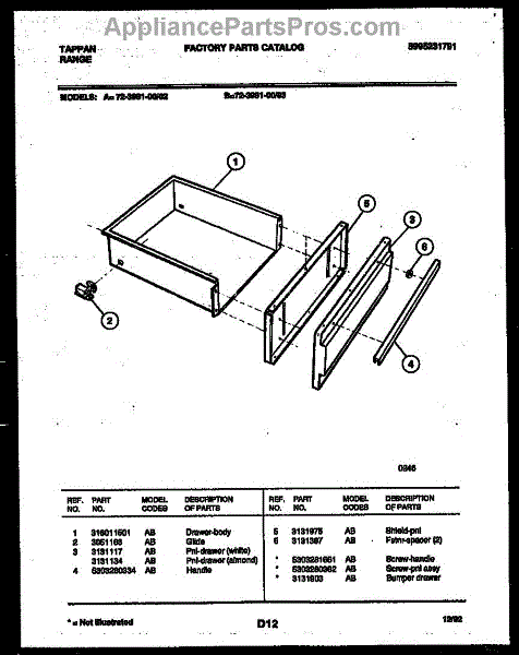 Parts for Frigidaire 72-3981-00-03: 04 - Drawer Parts