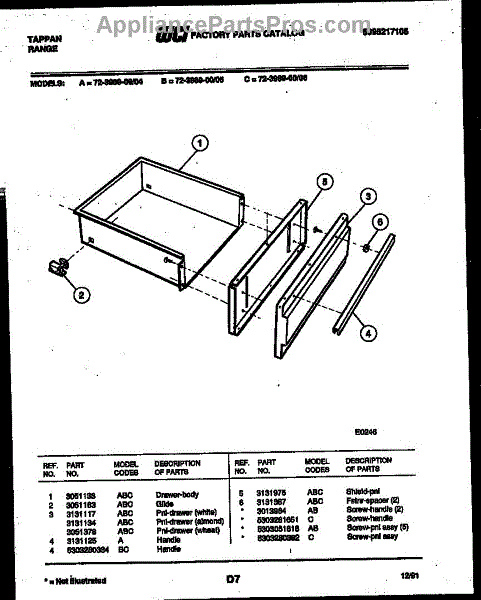Parts for Frigidaire 72-3989-00-06: 04 - Drawer Parts