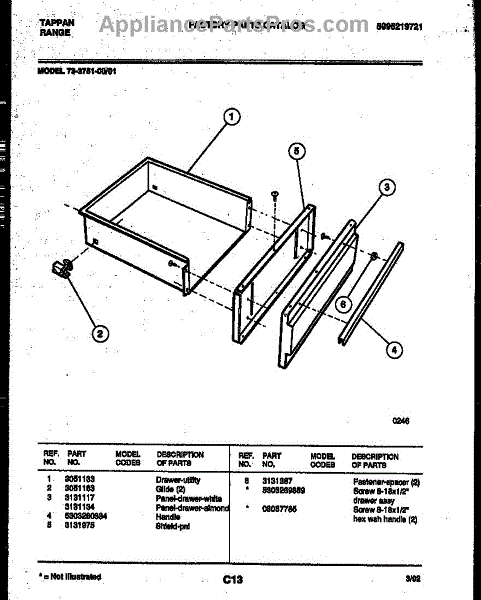 Parts for Frigidaire 73-3751-00-01: 10 - Drawer Parts