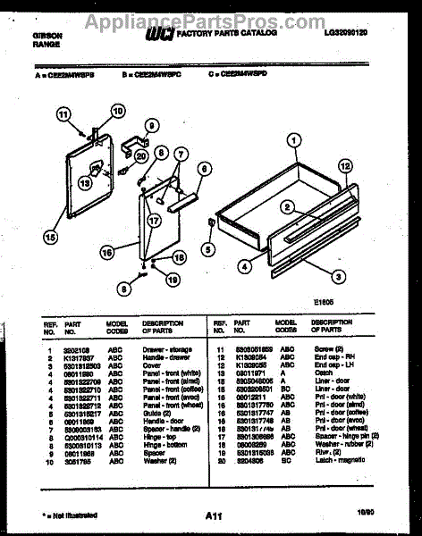 Parts for Frigidaire CEE2M4WSPD: 03 - Drawer Parts