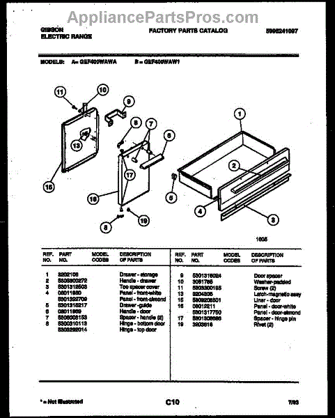 This is a replacement screw used to secure appliance panels and components. It restores proper fastening so panels, trim, or assemblies stay tight and reduce vibration or rattling. What it does