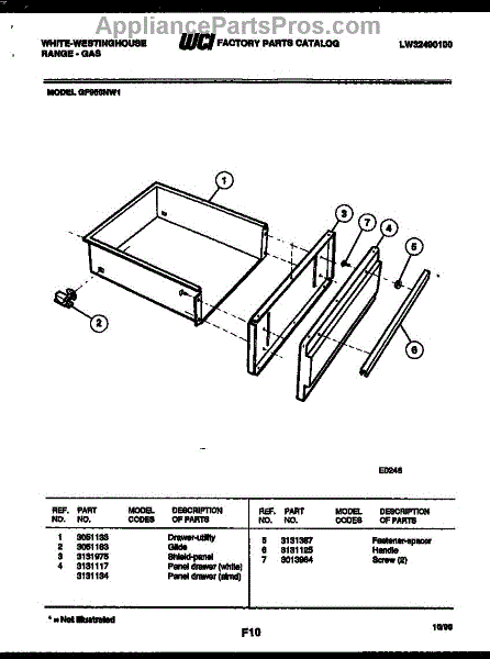 Parts for Frigidaire GF950NW1: 07 - Drawer Parts