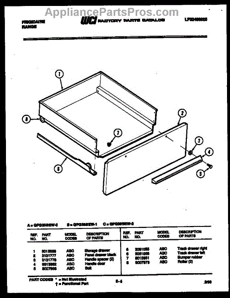 Parts for Frigidaire GPG38BEL0: 05 - Drawer Parts