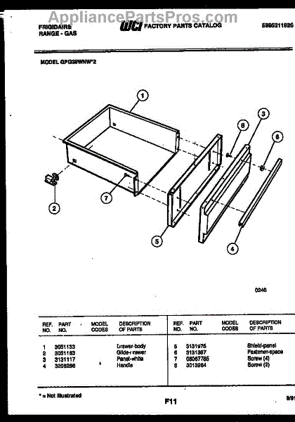 Parts for Frigidaire GPG39WNW2: 04 - Drawer Parts