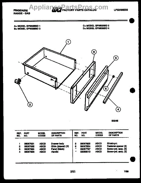 Parts for Frigidaire GPM638BDW1: 11 - Drawer Parts