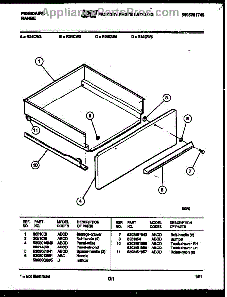Parts for Frigidaire R24CL5: 05 - Drawer Parts