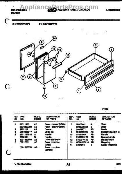 Parts for Frigidaire REC406DW2: 03 - Drawer Parts