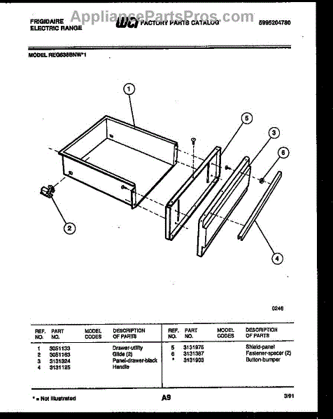 Parts for Frigidaire REG638BNW1: 08 - Drawer Parts