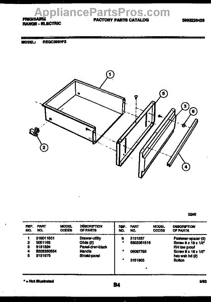 Parts for Frigidaire REGC39BNW3: 05 - Drawer Parts