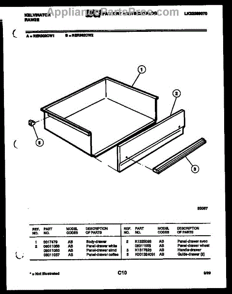 Parts for Frigidaire RER302CW1: 06 - Drawer Parts