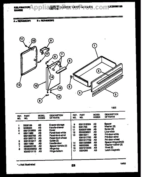 Parts for Frigidaire RER406GT1: 03 - Drawer Parts