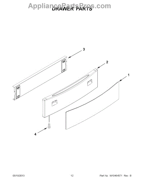 This factory screw secures appliance components to their mounting points. Replace missing, worn, or stripped hardware to restore a tight fit, proper alignment, and quieter operation across the affected assembly.