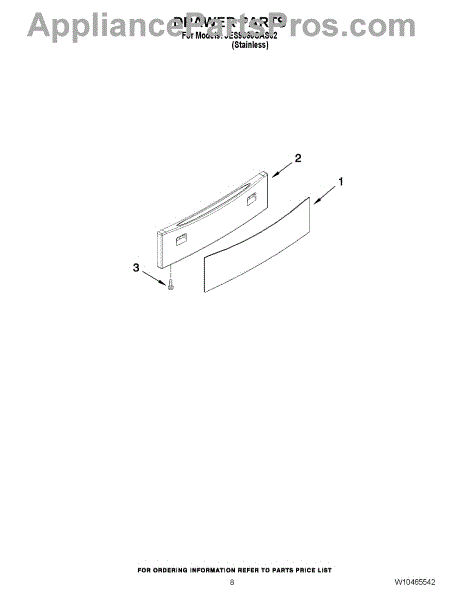 This factory screw secures appliance components to their mounting points. Replace missing, worn, or stripped hardware to restore a tight fit, proper alignment, and quieter operation across the affected assembly.