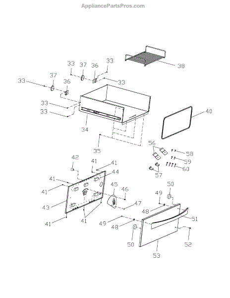 This spacer positions and supports appliance panels or components to ensure correct alignment and stable operation. Replacing a damaged spacer restores proper fit and reduces gaps, rubbing, or vibration caused by misaligned parts. What it does: