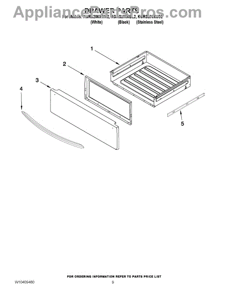 Parts for Kitchenaid KGRS206XWH2: 06 - Drawer Parts