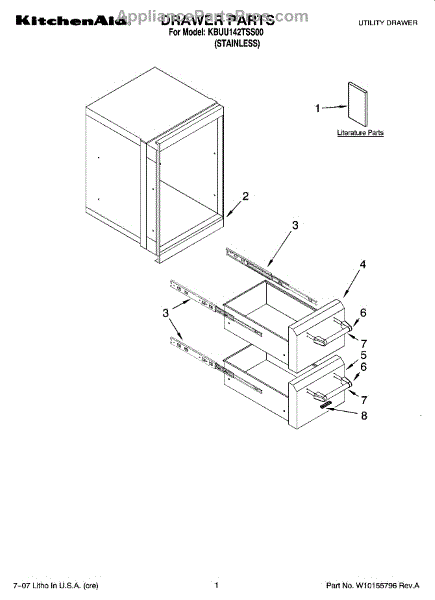 Parts for Kitchenaid KBUU142TSS00: 01 - Drawer Parts