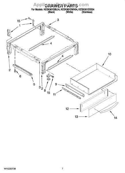 Parts for Kitchenaid KESK901SWH04: 04 - Drawer Parts
