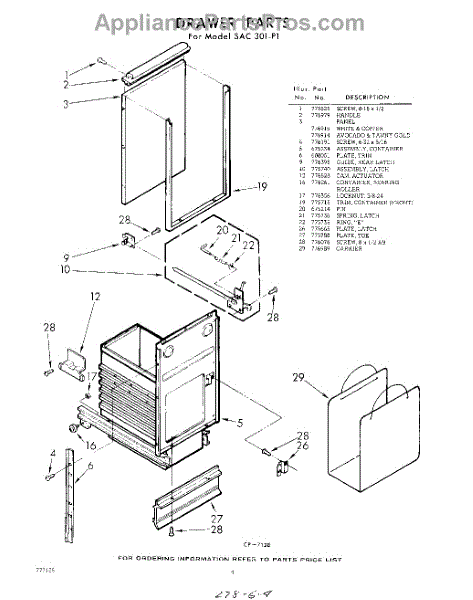 Parts for Whirlpool SAC301P1: 04 - Drawer Parts