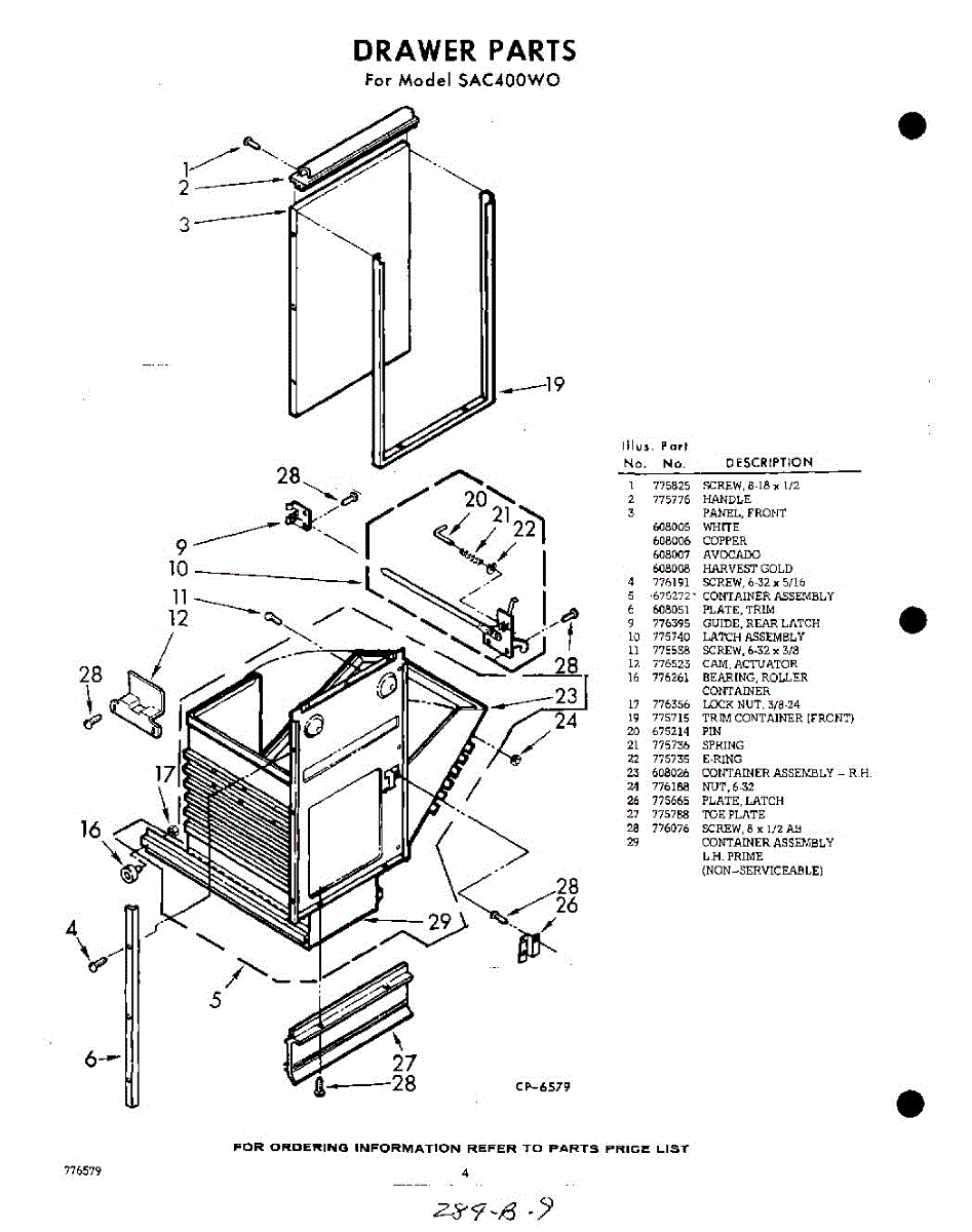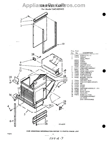 Parts for Whirlpool SAC400W0: 04 - Drawer Parts