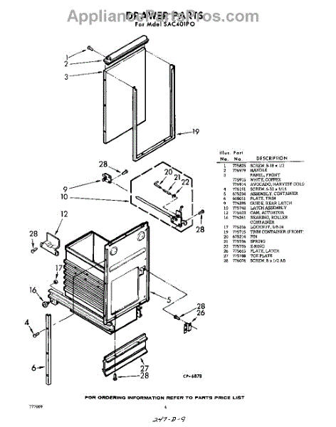Parts for Whirlpool SAC401P0: 04 - Drawer Parts