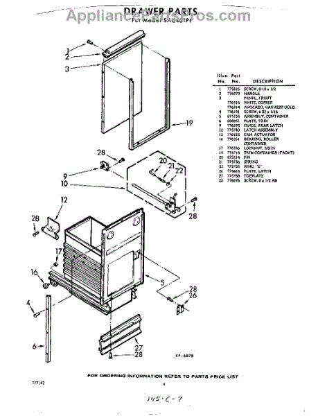 Parts for Whirlpool SAC401P1: 04 - Drawer Parts