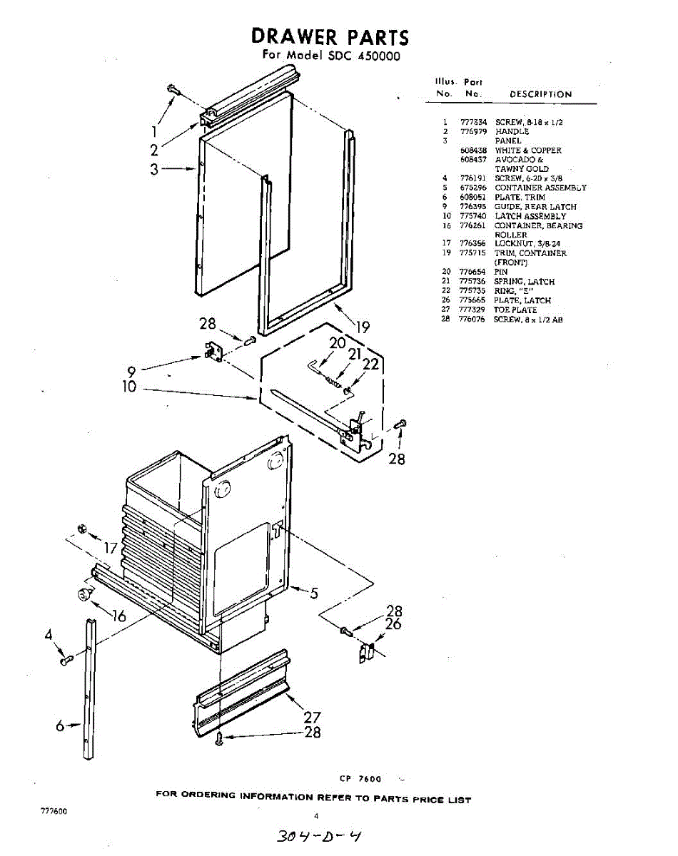 Parts for Whirlpool SDC450000: 04 - Drawer Parts