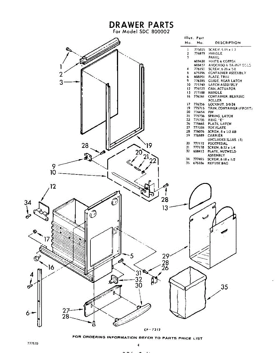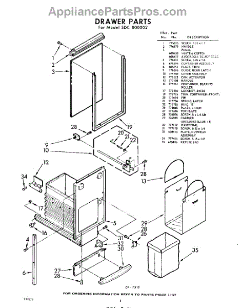 Parts for Whirlpool SDC800002: 04 - Drawer Parts