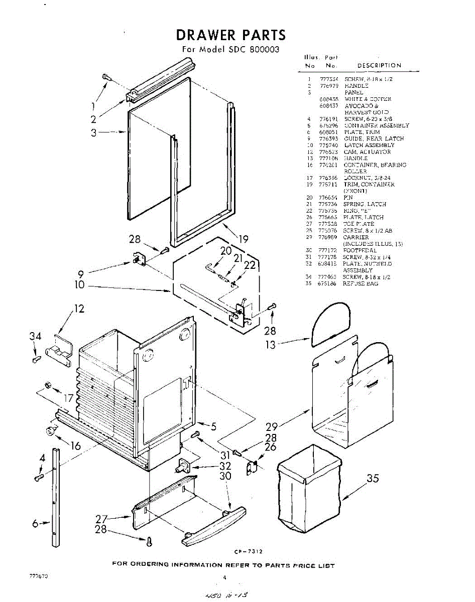 Parts for Whirlpool SDC800003: 04 - Drawer Parts