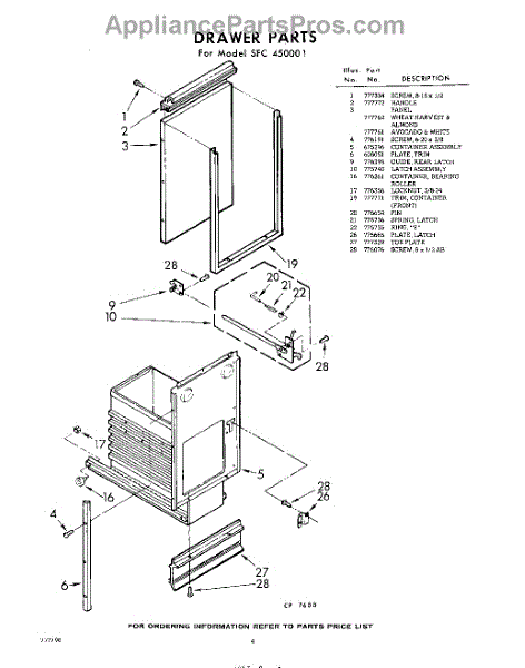 Parts for Whirlpool SFC450001: 04 - Drawer Parts