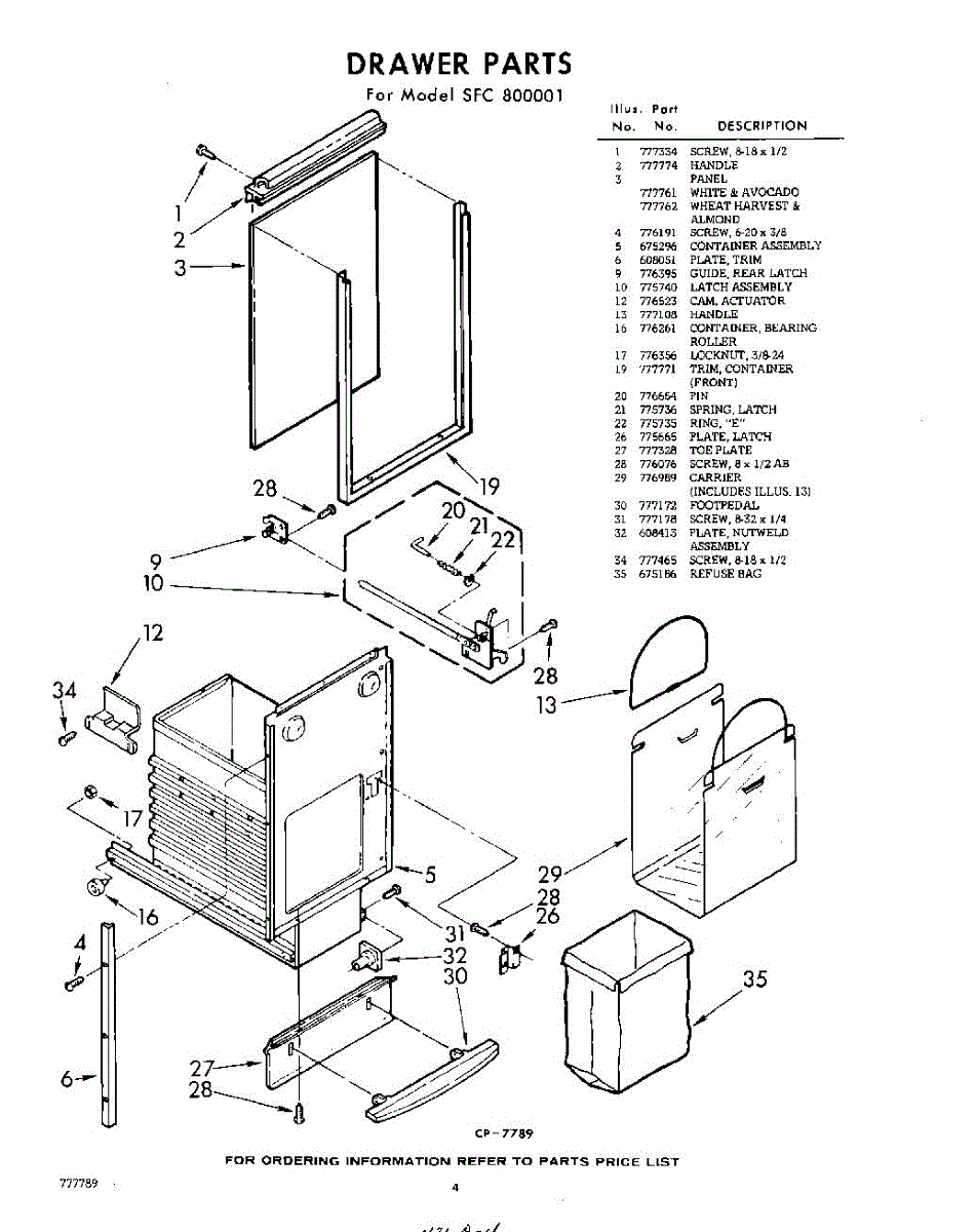 Parts for Whirlpool SFC800001: 04 - Drawer Parts