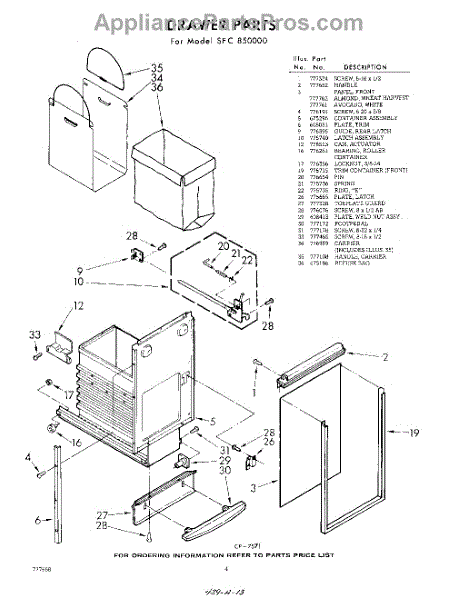 Parts for Whirlpool SFC850000: 04 - Drawer Parts