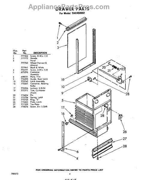 Parts for Whirlpool SHC450002: 04 - Drawer Parts