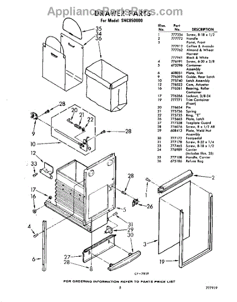 Parts for Whirlpool SHC850000: 05 - Drawer Parts