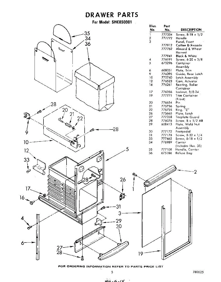 Parts for Whirlpool SHC850001: 05 - Drawer Parts