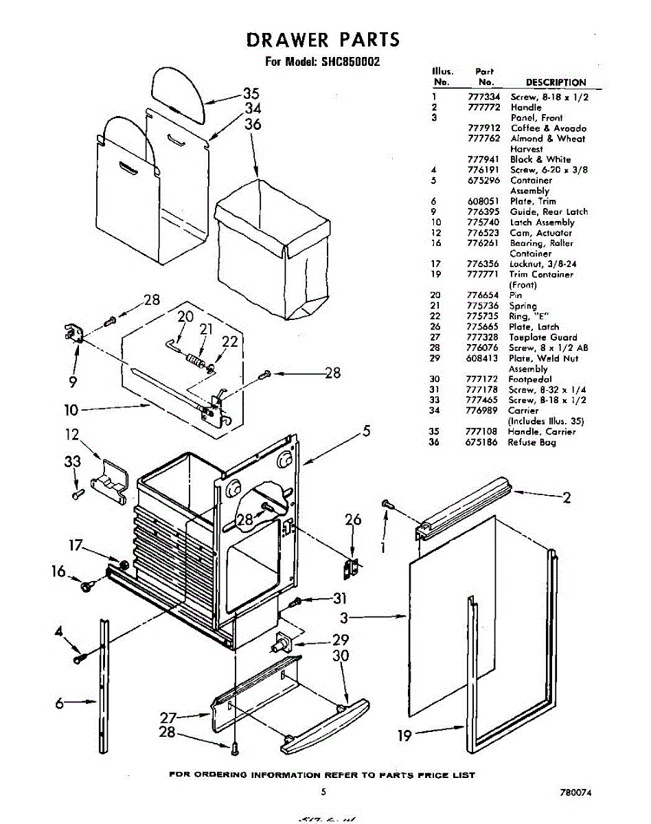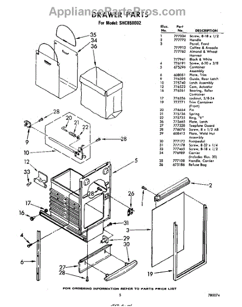 Parts for Whirlpool SHC850002: 05 - Drawer Parts