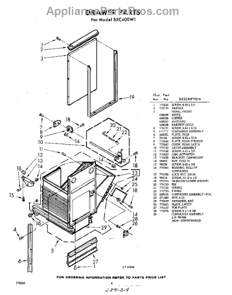 Parts for Whirlpool SXC400W1: 04 - Drawer Parts