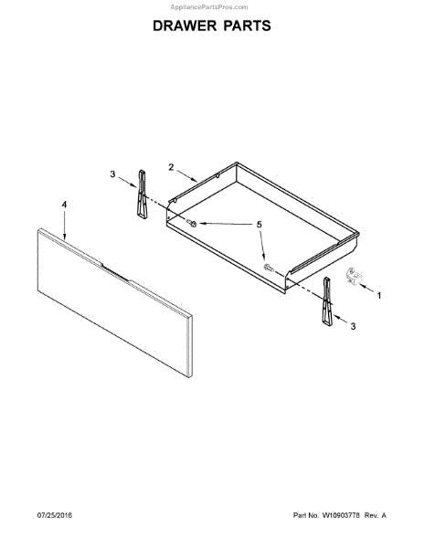The Oven Glide Drawer is an OEM part for Whirlpool ovens. This component allows the storage drawer beneath the oven to slide smoothly in and out, providing convenient access to stored items such as bakeware and kitchen utensils.
